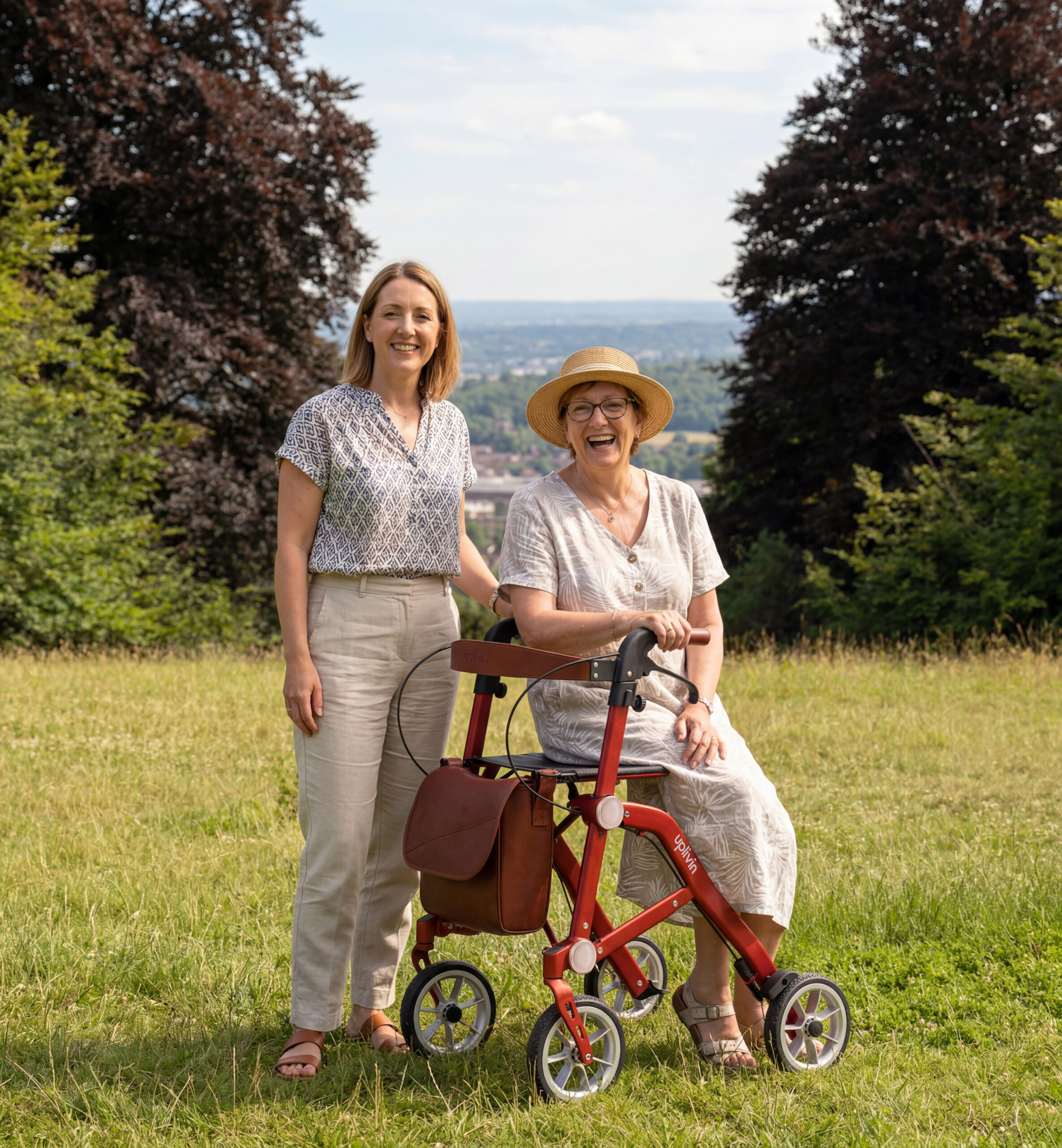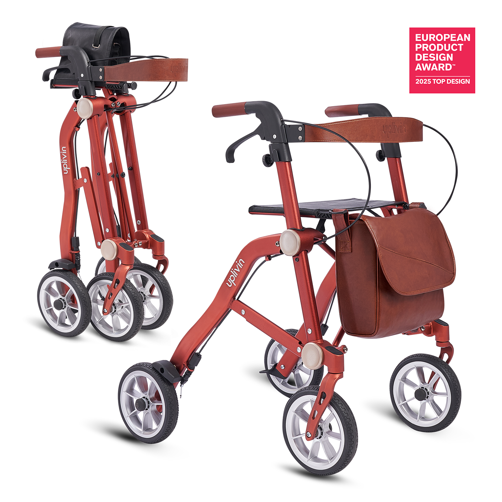 El modelo Trive de Uplivin combina elegancia, comodidad y calidad. Su diseño moderno, su ligereza y sus materiales agradables al tacto lo convierten en un andador ideal para el uso diario. Gracias a sus ruedas de alta calidad, es muy fácil de maniobrar, tanto en interiores como en exteriores con desniveles. Está disponible en tres colores elegantes: verde oscuro, gris y terracota.