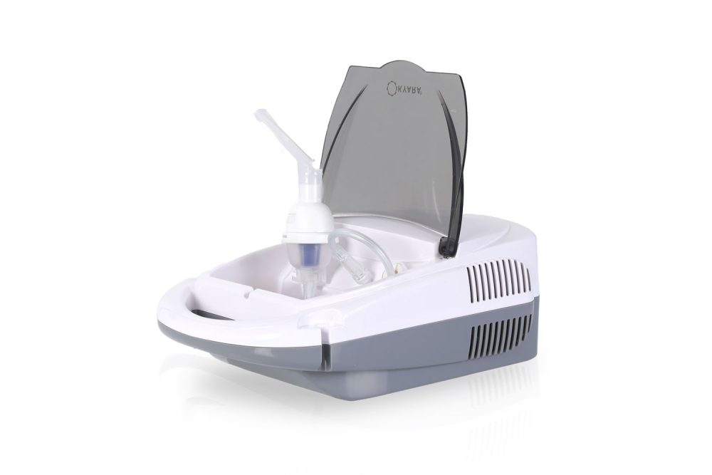 Gracias a su tecnología de aire comprimido, garantiza una administración estable y constante del medicamento, asegurando tiempos de inhalación reducidos y un funcionamiento fiable. El dispositivo está equipado con filtro y protección, tubo de aire con salida dedicada, botón de encendido/apagado (ON/OFF), ampolla para medicación y boquilla.