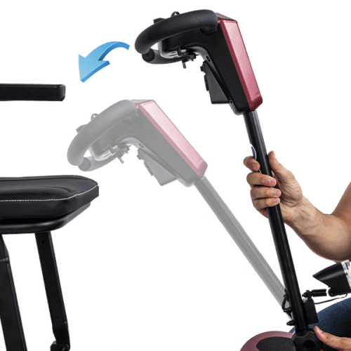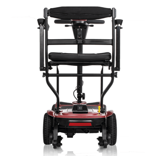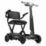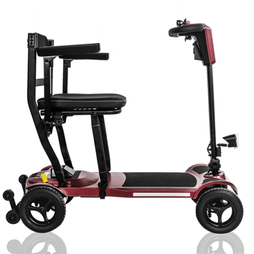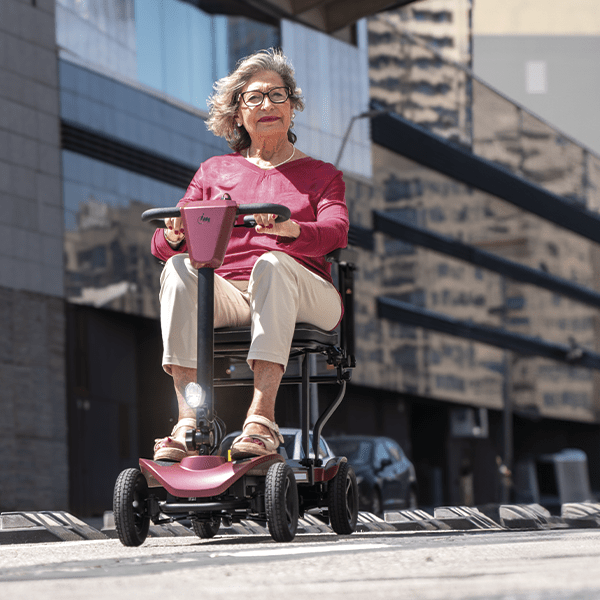 Con una profundidad de 103 cm y un ancho total de 45 cm sin reposabrazos, este scooter es extremadamente compacto, lo que facilita la conducción en espacios reducidos, el paso por puertas y la entrada en ascensores pequeños. Gracias a su peso ultraligero de 16 kg sin la batería, el scooter Bora-Bora se maneja con facilidad y se puede subir al maletero del coche sin esfuerzo.