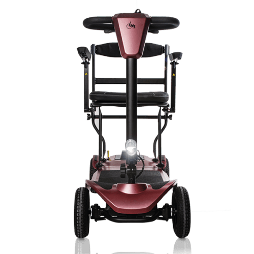 Además, su asiento y mástil son plegables manualmente, transformándolo en un scooter del tamaño de una maleta.