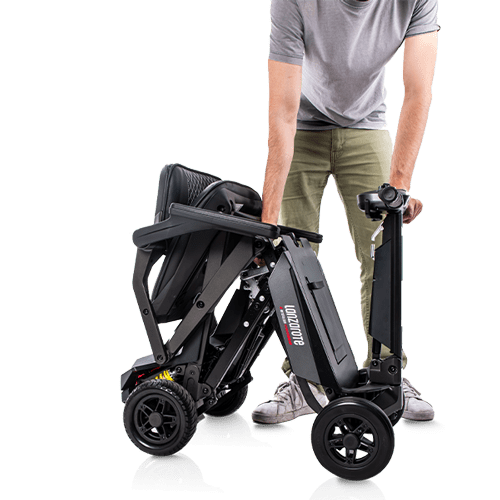 Gracias a su peso ultraligero y diseño supercompacto, el scooter Lanzarote es totalmente plegable, alcanzando unas dimensiones reducidas de 47 x 40 x 65 cm (ancho x profundidad x alto), similares a las de una maleta.