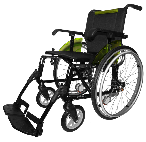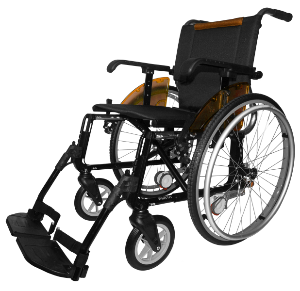 · Ruedas traseras de 600 mm y opción Giro, que permite al acompañante desplegar de forma sencilla y sin esfuerzo unas ruedas de tránsito para realizar movimientos laterales y giros de 360º: