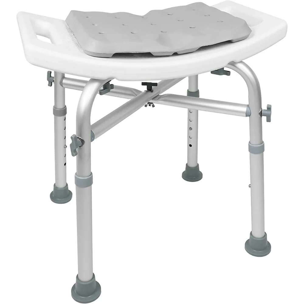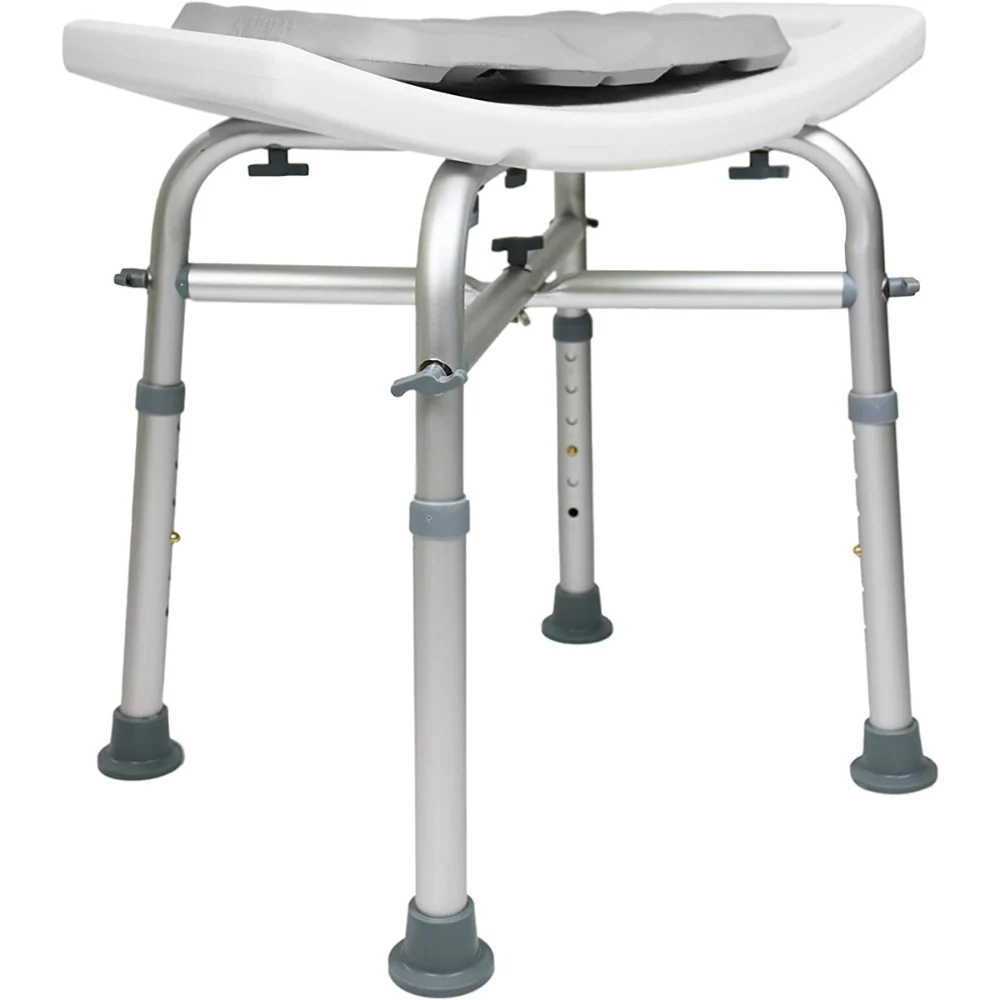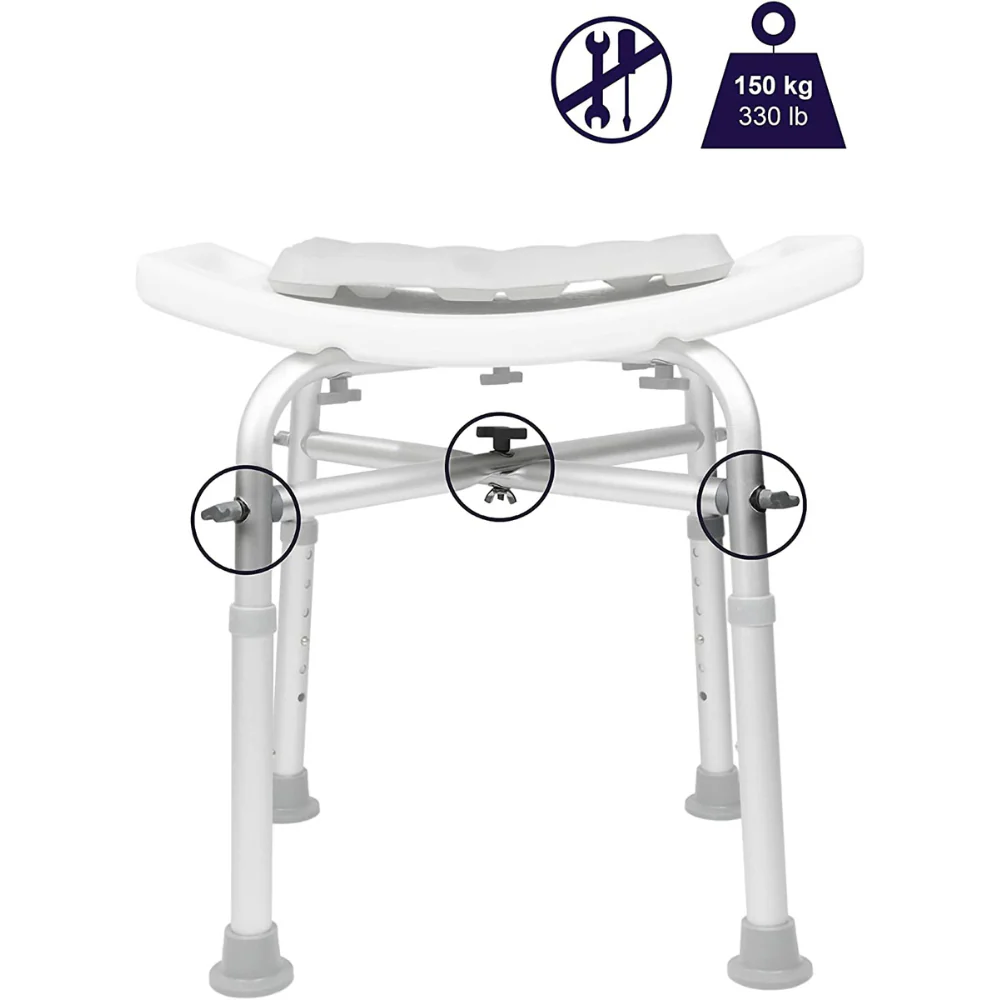 El taburete de baño cuenta con una estructura reforzada con barras transversales resistente y libre de corrosión que le permite soportar hasta un total de 150 kg.